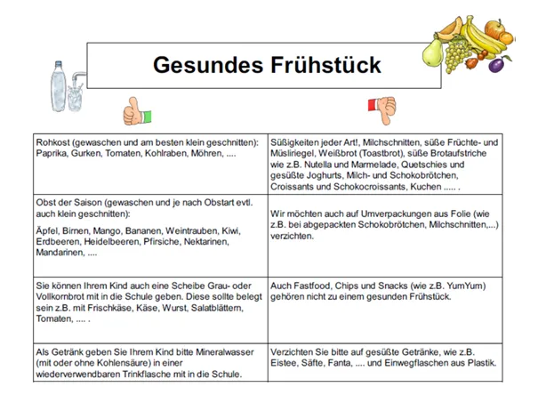 Zur Müllvermeidung wird in den Klassen die Nutzung von waschbaren Trinkflaschen und Brotbehältern immer wieder thematisiert. Dadurch wird der Ressourcenverbrauch minimiert. Es gibt das Angebot Brotdosen und Trinkflaschen mit dem Logo der Grundschule zu erwerben.