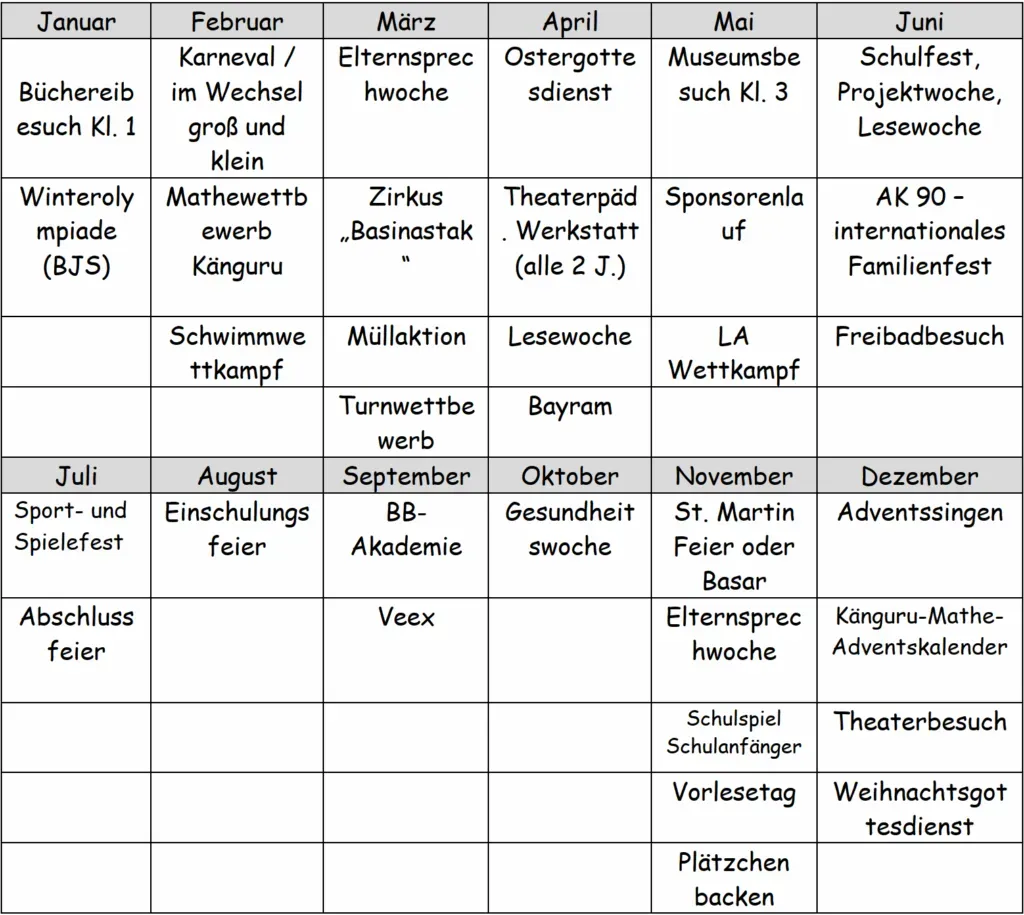 3.1 Regelmäßige Veranstaltungen im Schuljahr Einleitung Leitbild Schulleben Schulprogramm Schulumfeld Veranstaltungen