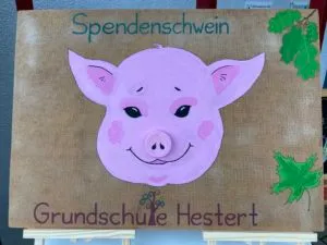 Dies ist unser neues „Haustier“ in der Grundschule Hestert – unser Spendenschwein. Seinen ersten Auftritt hatte es bei der Einschulung der Erstklässler 2021. Es fand großen Anklang und wurde auch schon recht gut gefüttert. Da Schweine – besonders Spendenschweine – ja immer großen Hunger haben, bitten wir alle, die unsere Veranstaltungen besuchen, zukünftig nach diesem niedlichen Tierchen Ausschau zu halten und es zu füttern, damit es sich auch immer bei uns an der GS Hestert wohlfühlt. Unser Dank geht auch an Frau Lötzsch, die die Idee hatte und so kreativ umgesetzt hat. Wir hoffen alsbald wieder Veranstaltungen mit Besuchern durchführen zu können, um Ihnen unser Spendenschwein vorstellen zu können.